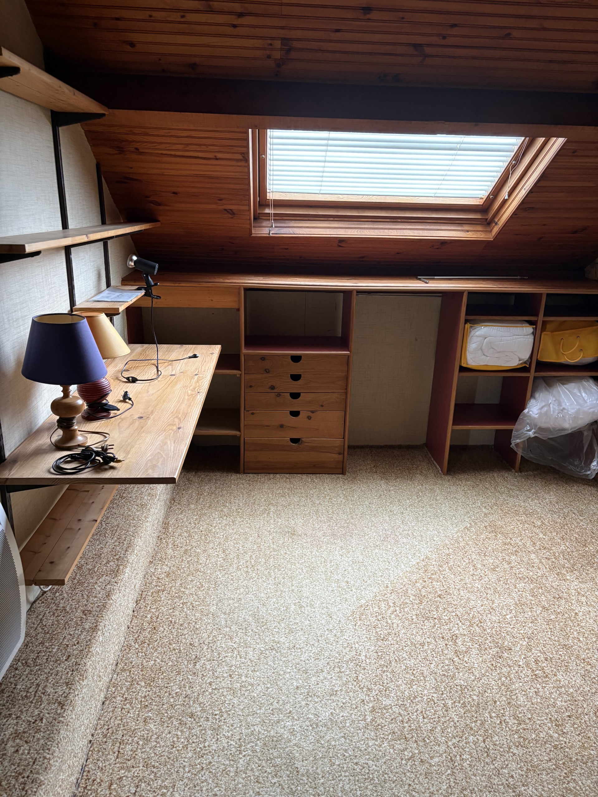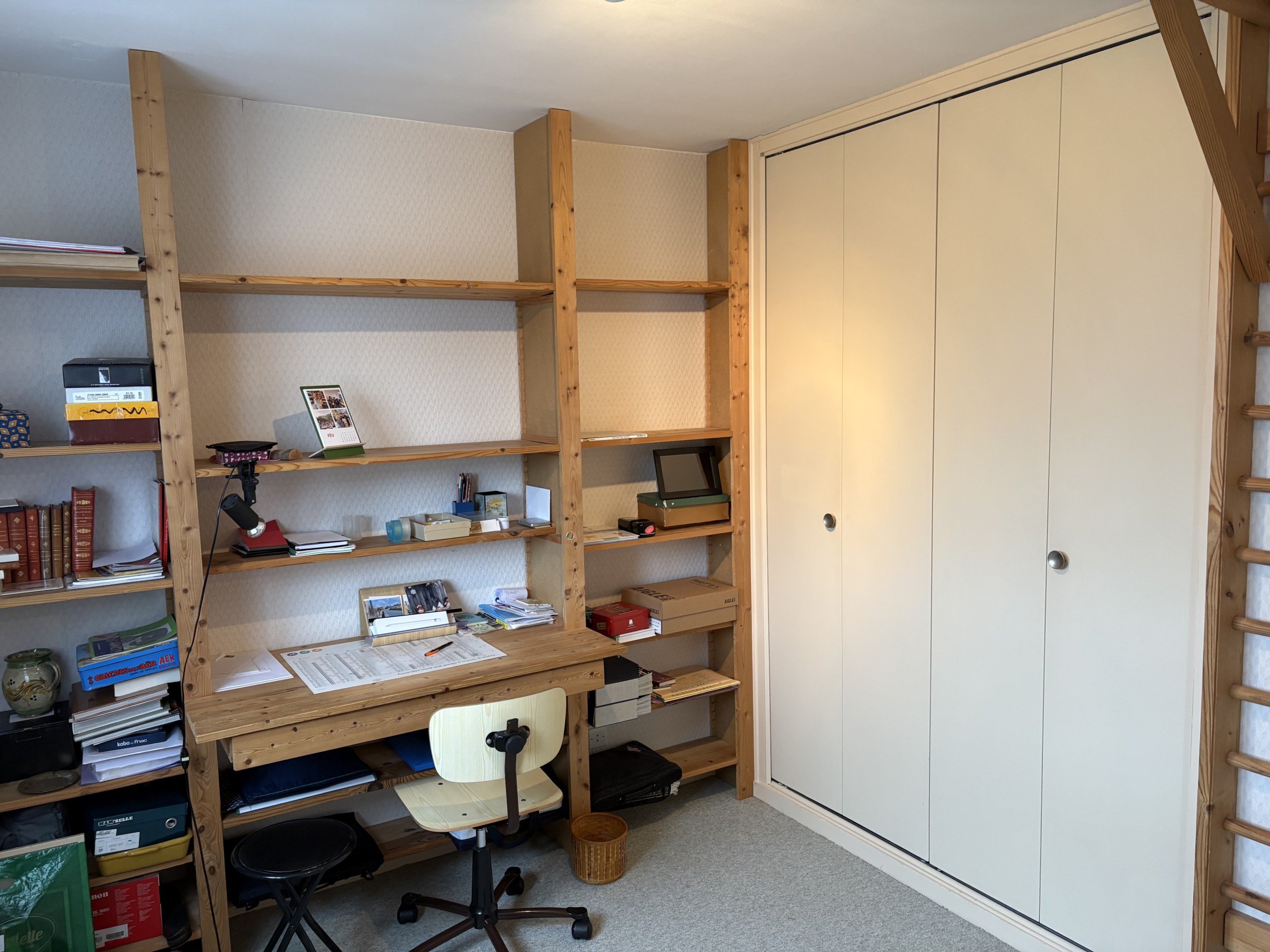 Au-dessus du garage : pièce pouvant servir de bureau avec chauffage.