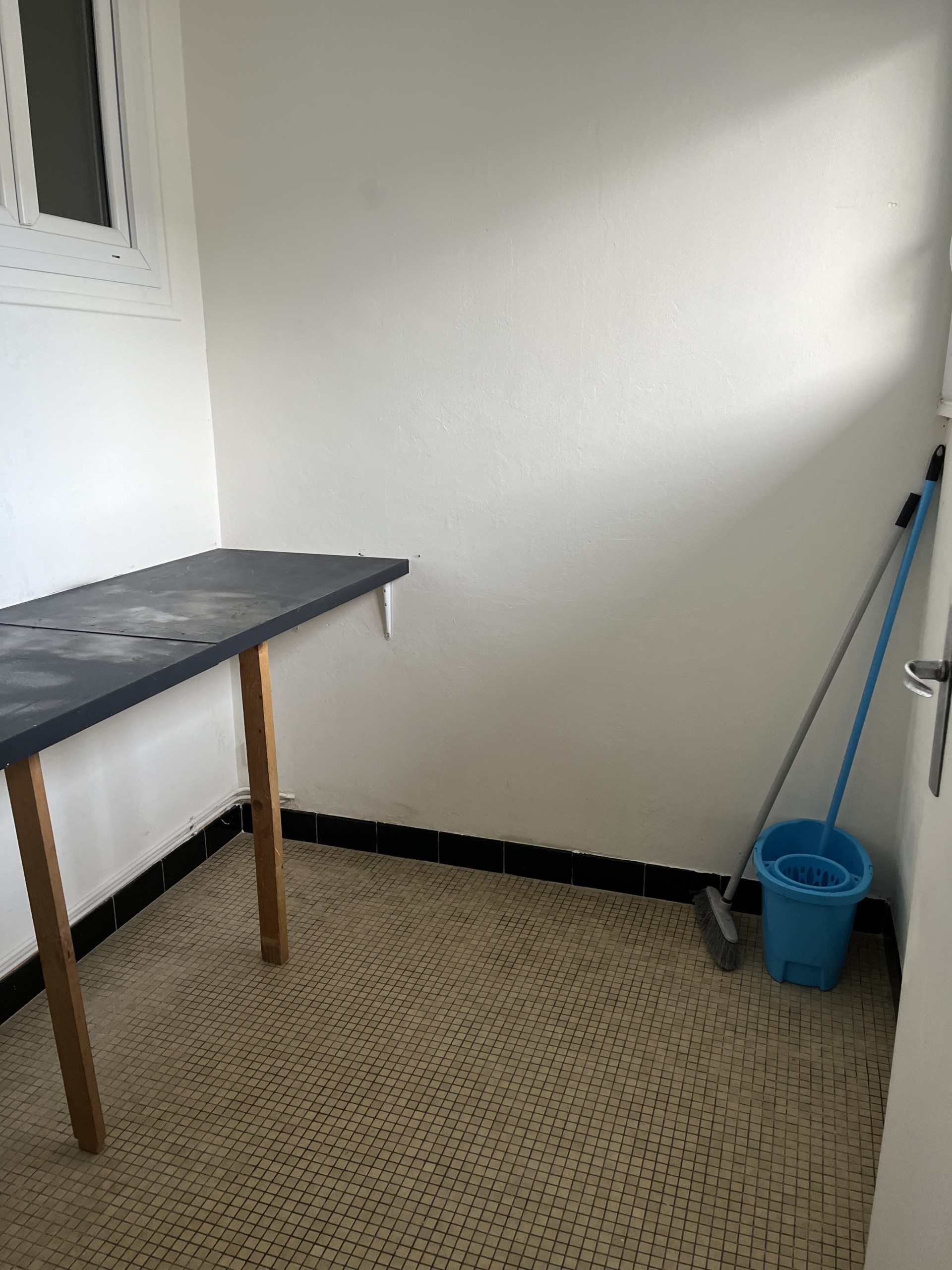 D’une grande entrée avec placard, d’une cuisine, d’un cellier pouvant servir de buanderie, d’un séjour avec balcon donnant sur l’arrière du batiment, de deux chambres, d’une salle de bains et d’un WC séparé.
