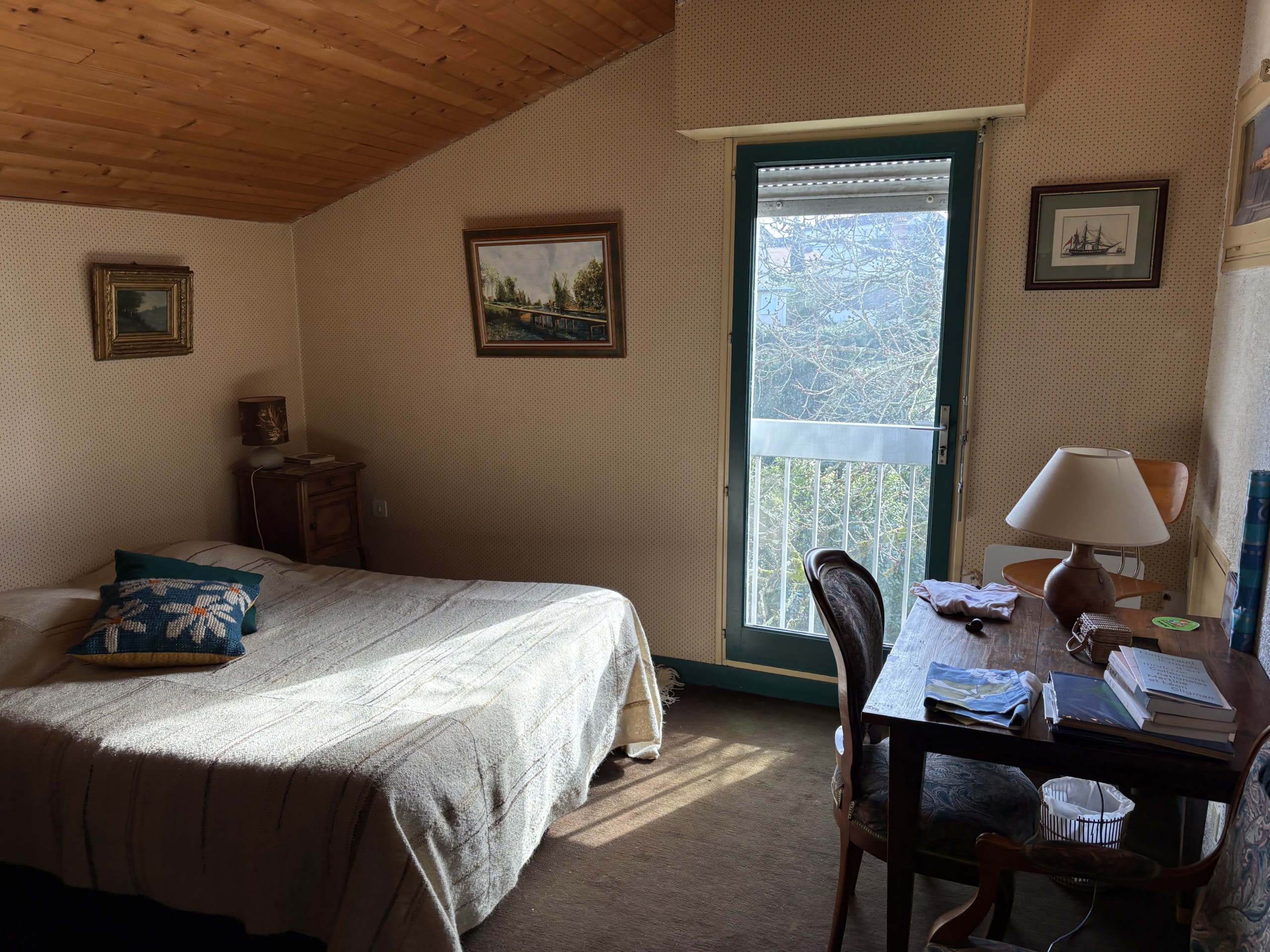 Au troisième mi-étage : une chambre avec une salle d’eau.