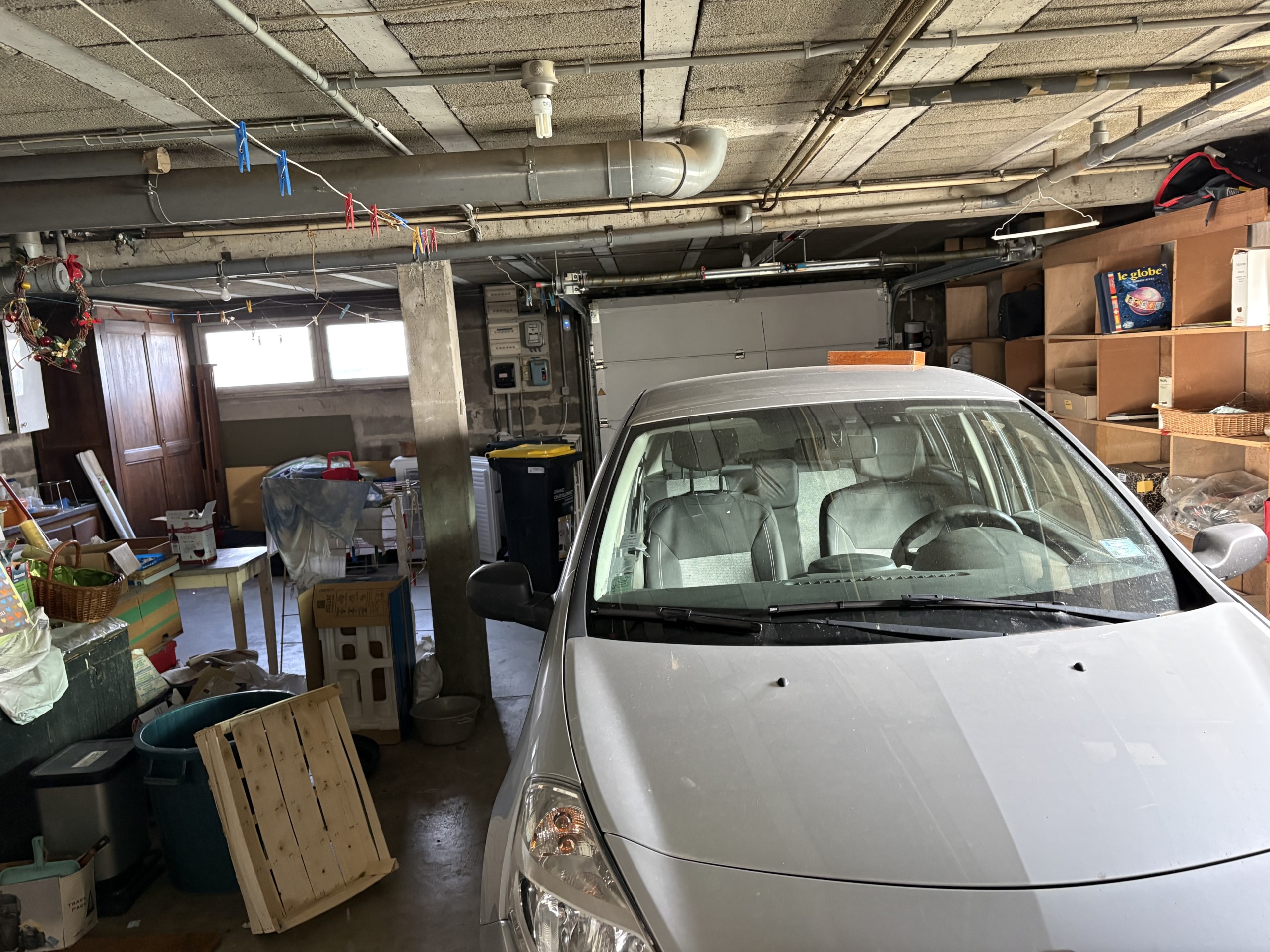 Grand garage deux voitures, 59m² avec porte électrique.