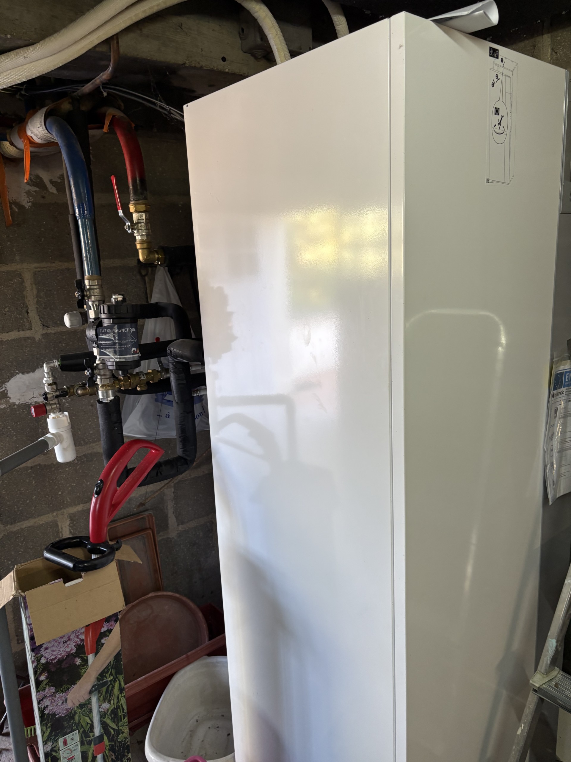 Chauffage par pompe à chaleur air/eau datant de 2023.