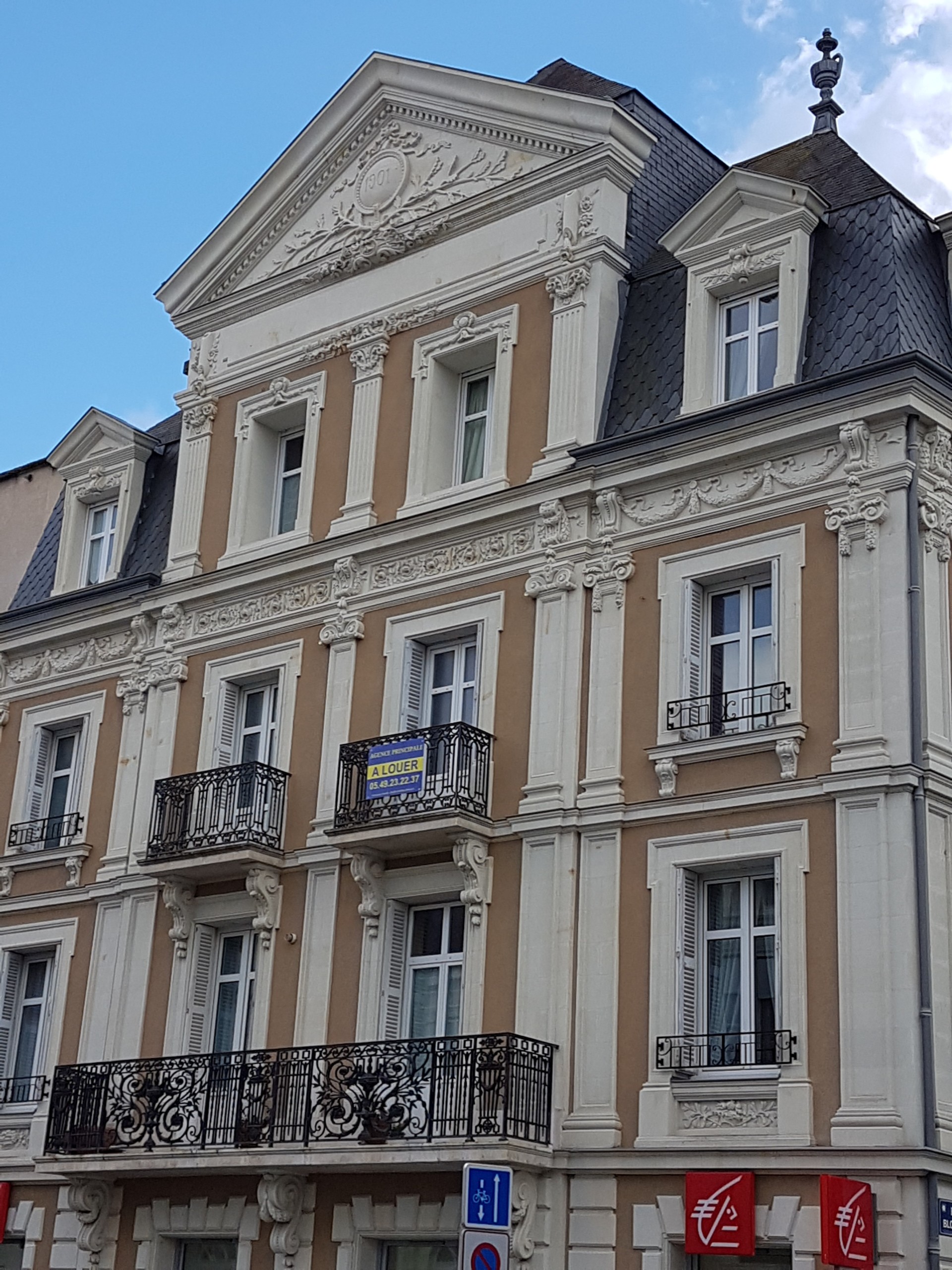 D’une entrée avec nombreux placards, un séjour très spacieux de 37 m² avec fenêtres donnant sur Boulevard Blossac et Mairie avec belles prestations donnant sur une cuisine ouverte aménagée et équipée de beaux matériaux, une chambre parentale spacieuse avec sa salle d’eau, son dressing, son WC séparé, deux chambres, salle de bains avec WC.