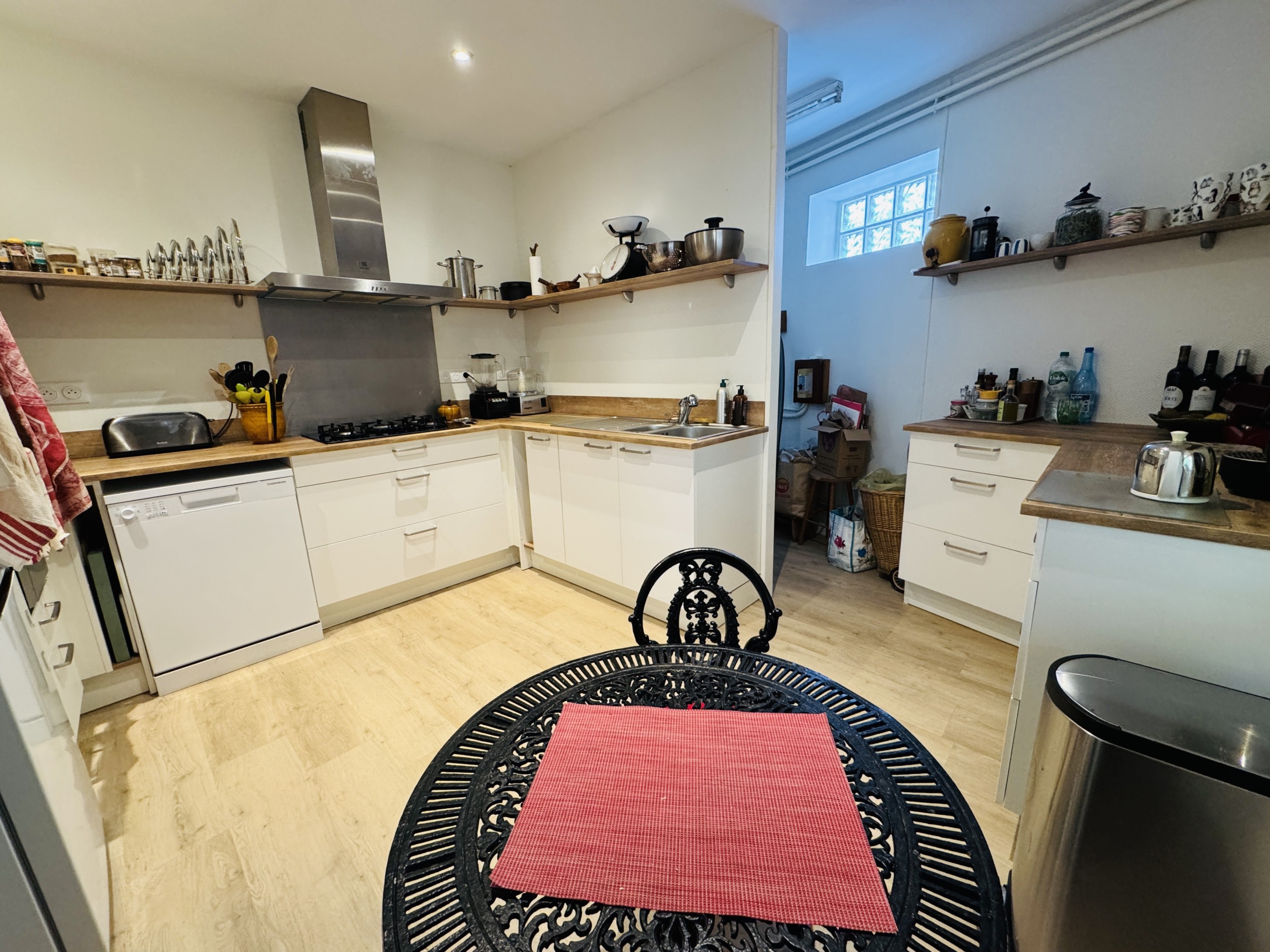 Elle comprend au rez de chaussée : deux entrées, une pièce de vie double de 39m² env, une cuisine aménagée et équipée récente, un espace buanderie-chaufferie, WC.