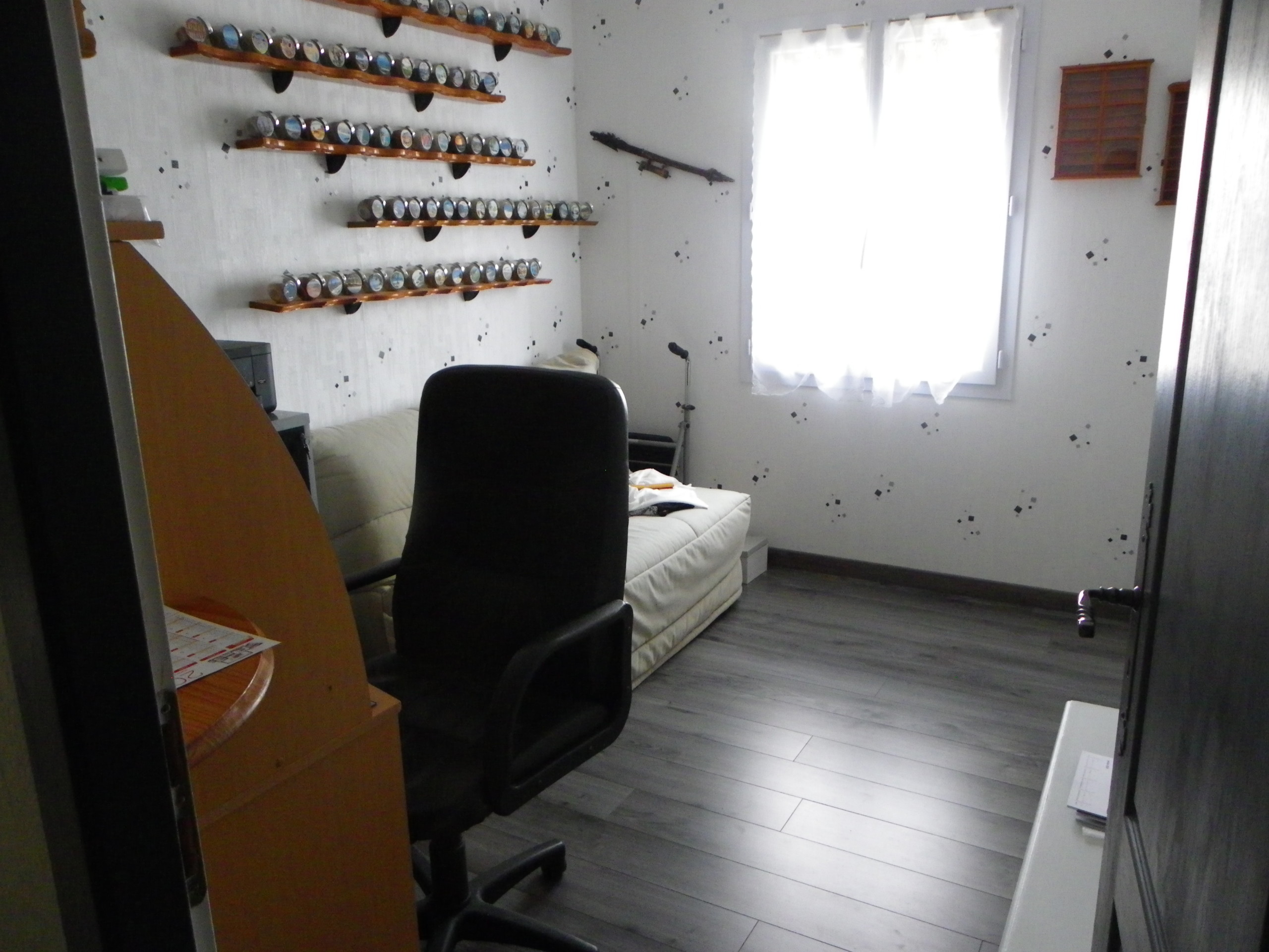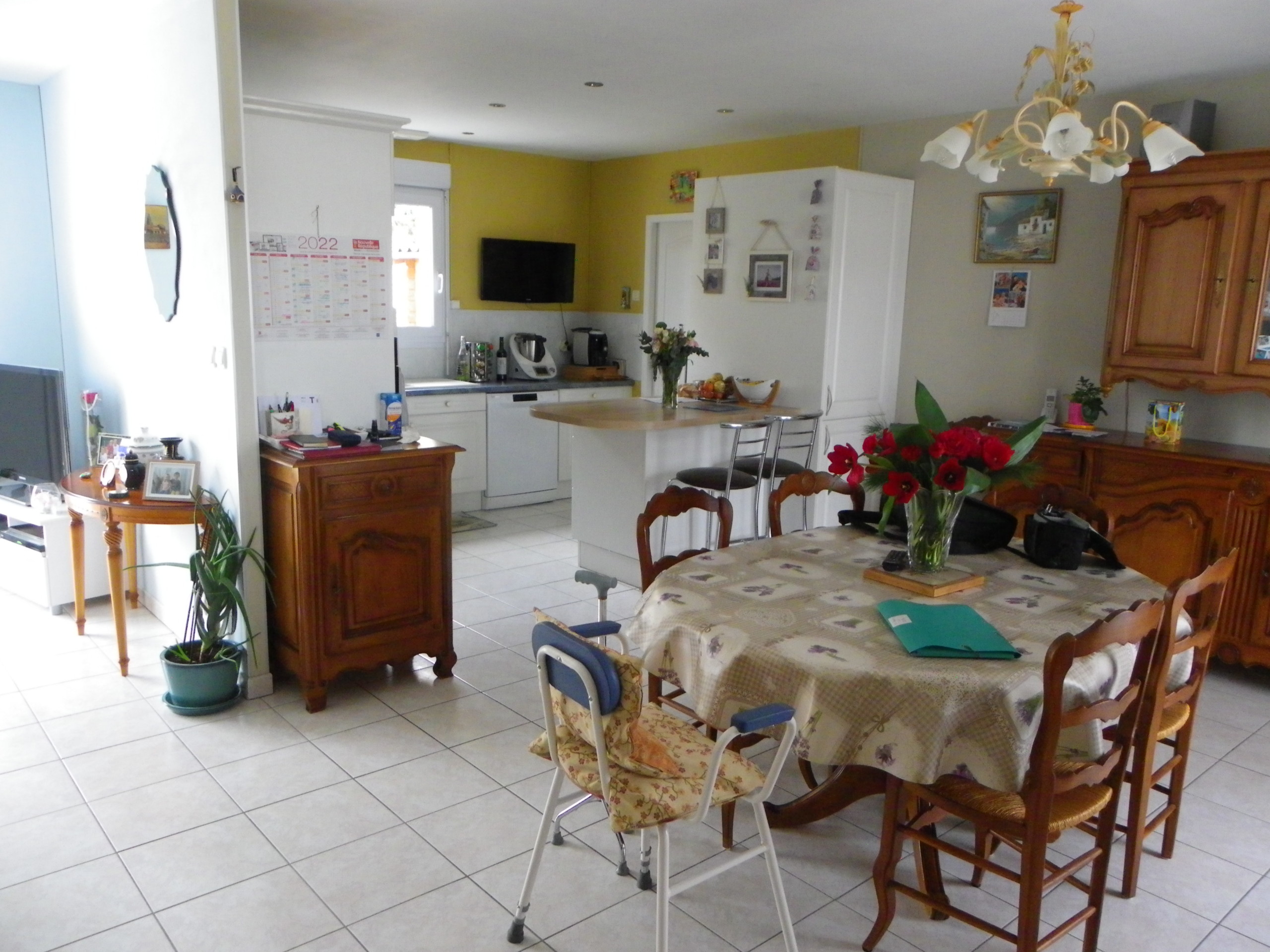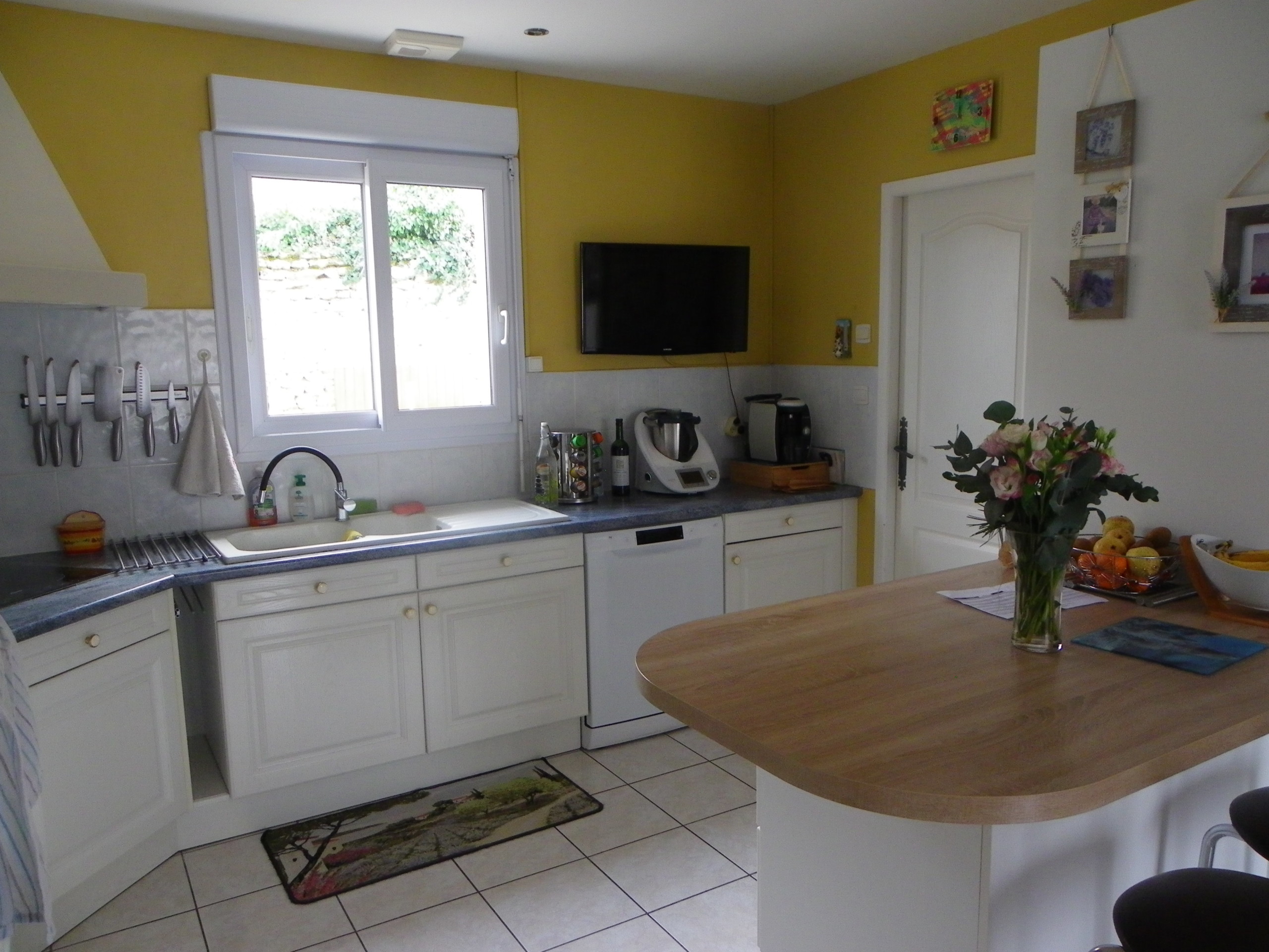 Cuisine aménagée et équipée ouverte sur séjour, 3 chambres avec placard, cellier, salle de bains avec douche, WC