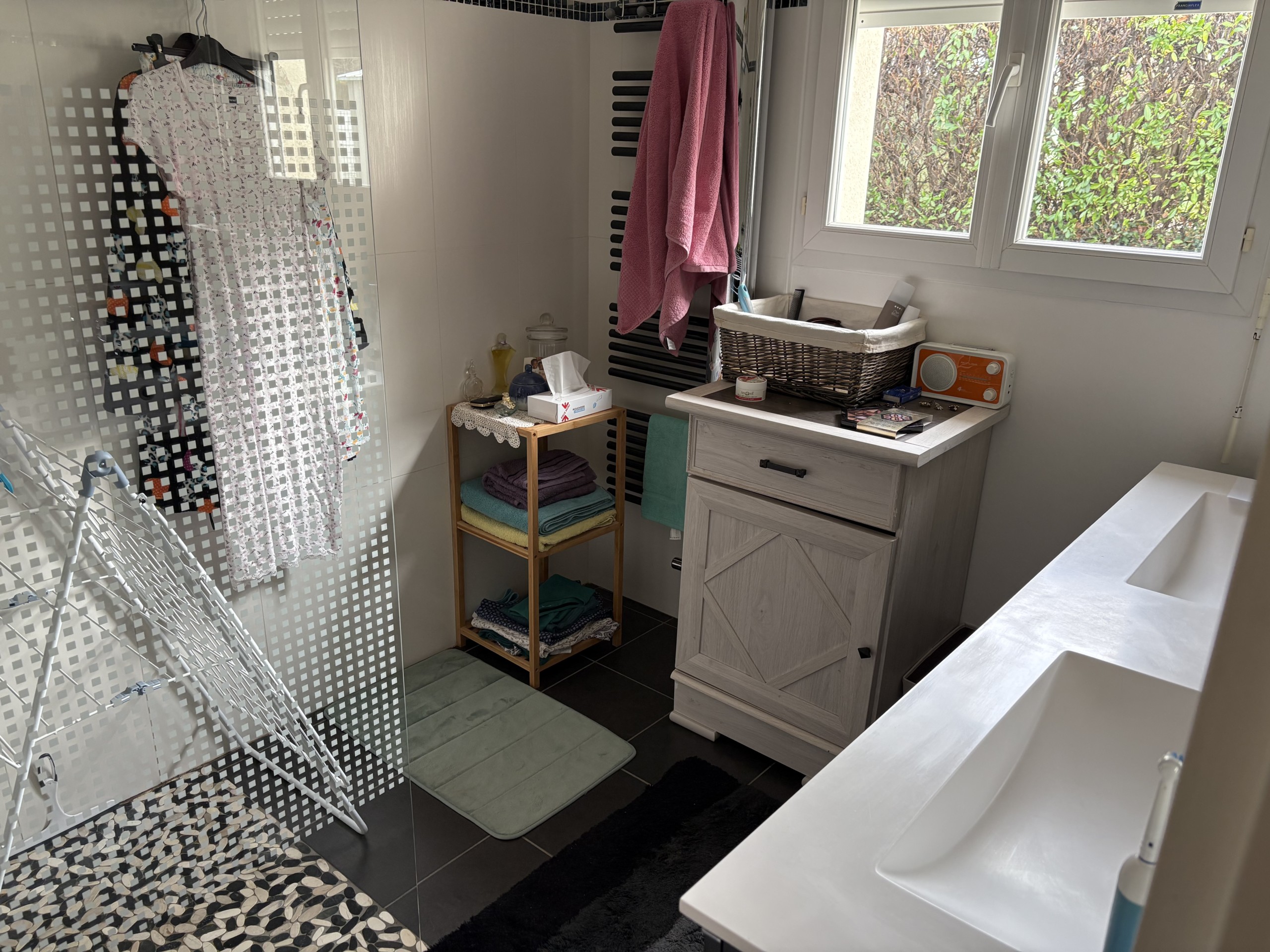Ce vrai plain-pied de 91,06 m² comporte un beau salon – séjour très lumineux donnant sur la Vienne, cuisine équipée et ouverte, 3 chambres de bonne dimension avec placards, salle d’eau avec douche à l’italienne, 2 vasques, WC séparés, grande véranda neuve de 20 m² devant le séjour. Grand espace pouvant servir de garage ou être aménagé en pièce supplémentaire (buanderie).